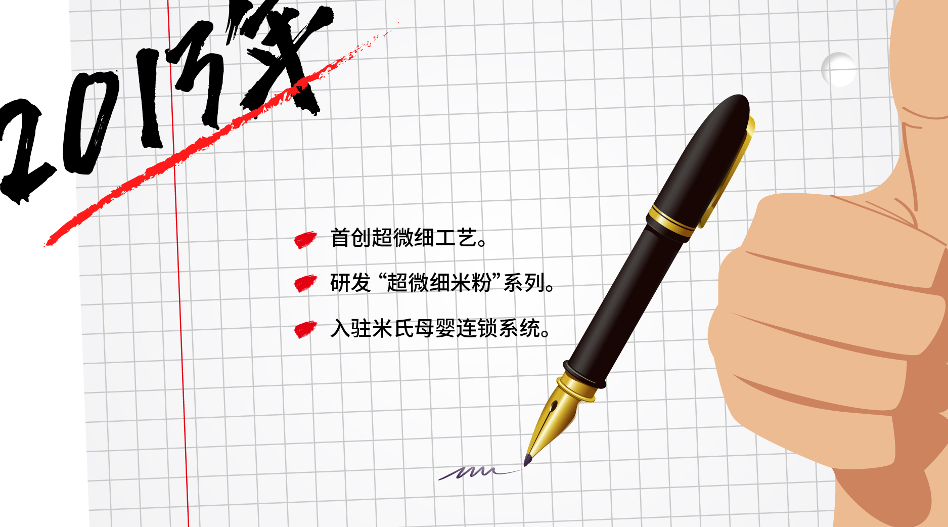 2013年,嬰尚調研發(fā)現(xiàn),從奶粉向輔食過渡時期,寶寶不太習慣米糊類的飲食方式,抗拒吃輔食。于是嬰尚研發(fā)團隊針對寶寶不吃輔食這個痛點,經過口味配方,沖調容器以及進食習慣等多方面的深入研究,反復測試,最終開發(fā)了獲得國家專利工藝的超微細米粉。超微細米粉含奶量高,作為過渡產品,很容易被寶寶所接受,幫助了絕大多數(shù)寶寶愛上了輔食。
