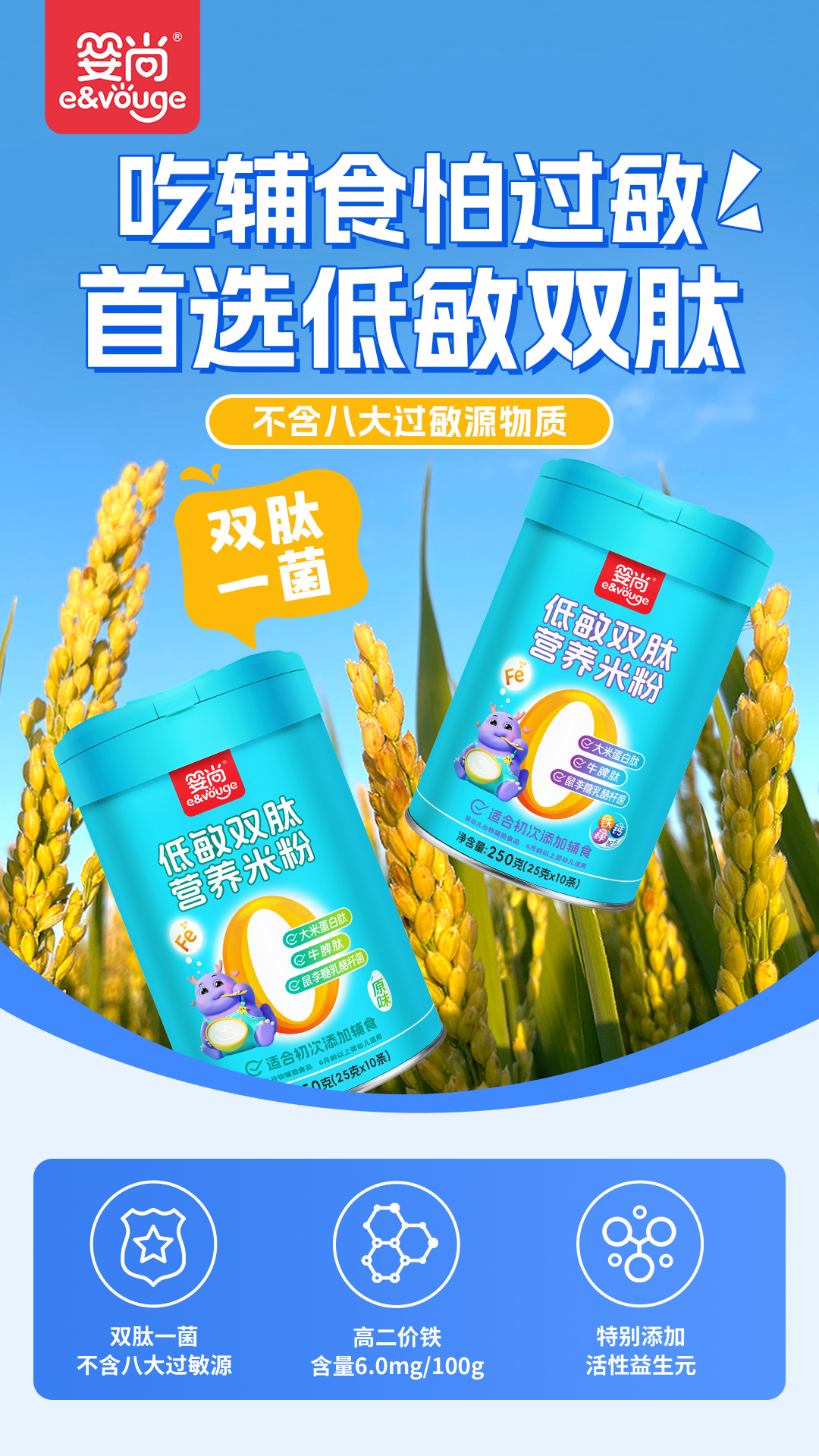 雙肽一菌,不含八大過敏原物質(zhì),更適合易過敏寶貝人群;